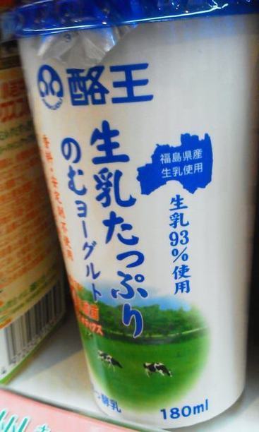 帰りに、松本駅内の売店で、いつもの通り、娘のための「宮崎県産のむヨーグルト」を探しましたが、在庫切れでした。店員さんに訊くと、「今あるのは、のむヨーグルトでは、こちらがおススメです。東北キャンペーンのもので、大変お味が美味しゅうございます」と言われ、見ると「福島県産生乳100%使用」。グーッと一日の疲れが肩に落ちました。